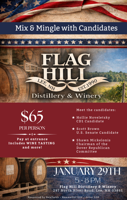 We are the official Republican organization for Dover, Rollinsford, and Somersworth, New Hampshire. Our mission is to support and elect Republican candidates who will uphold the values of freedom, personal responsibility, and limited government — values that define the Granite State and our great nation. Join us as we work to protect our liberties, grow our communities, and restore common-sense leadership at every level of government.
